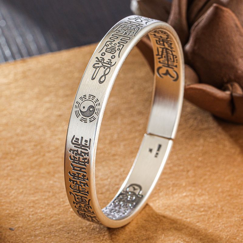 Silver Tianpeng Ruler Bracelet, Retro Taoist Solid Open Silver Bangle