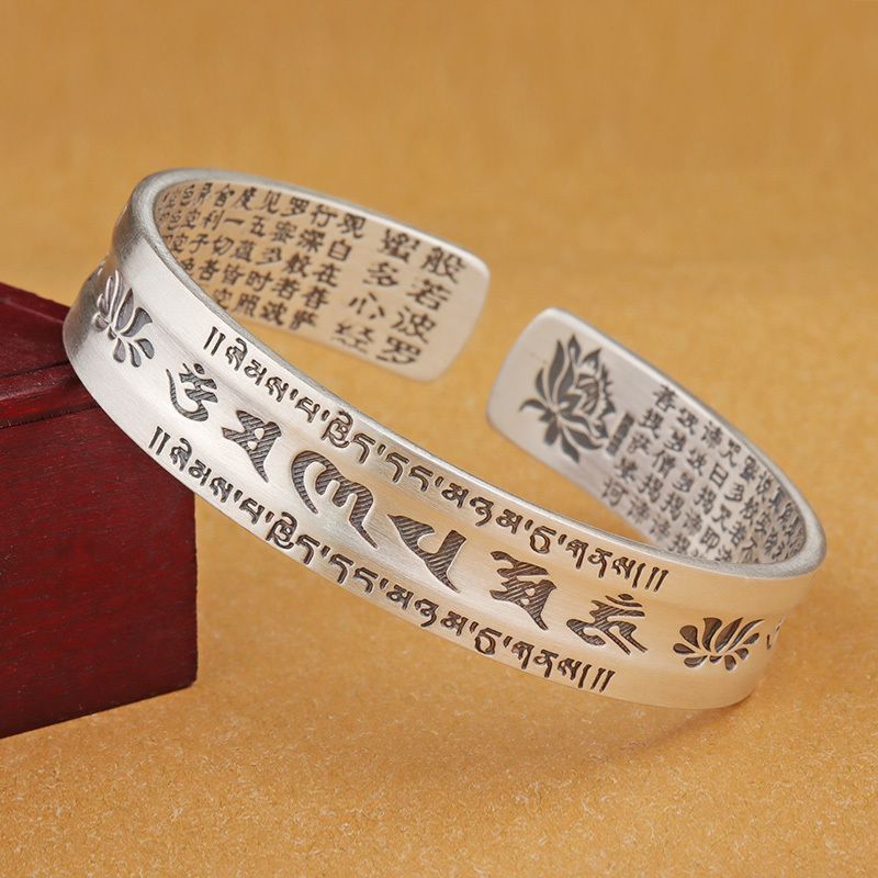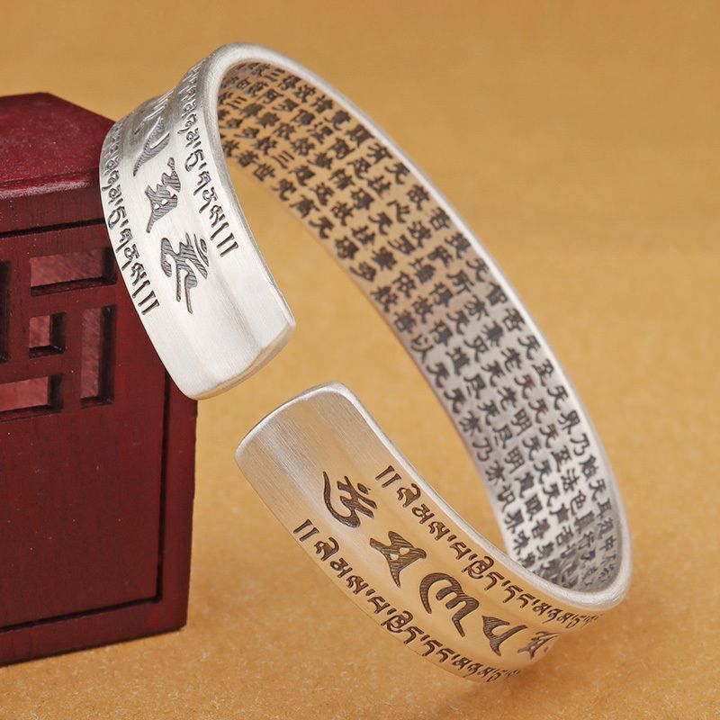 Silver Tianpeng Ruler Bracelet, Retro Taoist Solid Open Silver Bangle